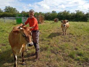 Nous nous sommes installés dans cette ferme Terre de Liens tout début 2024 avec 17 chèvres. Depuis, nous avons agrandi notre troupeau de chèvres et avons acquis quelques vaches jersiaises.