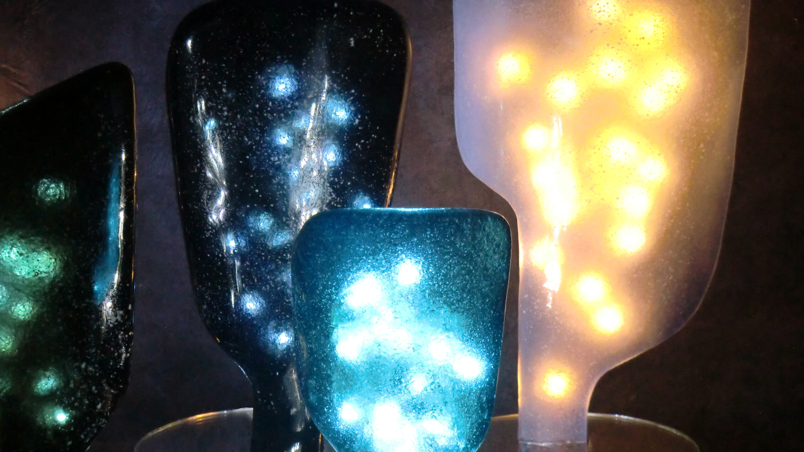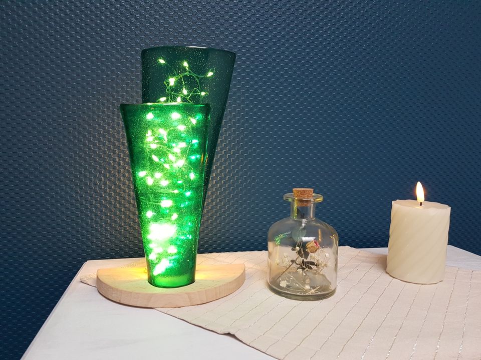 Retrouvez Lisa Chapet Design & Lumière, créatrice de lumière apaisante d'endormissement, de verre phosphorescent. Il y a le choix entre 3 agencements, les petites lampes, les grandes et les doubles, avec deux éléments en verre. Réalisation artisanale, chaque lampe est unique.