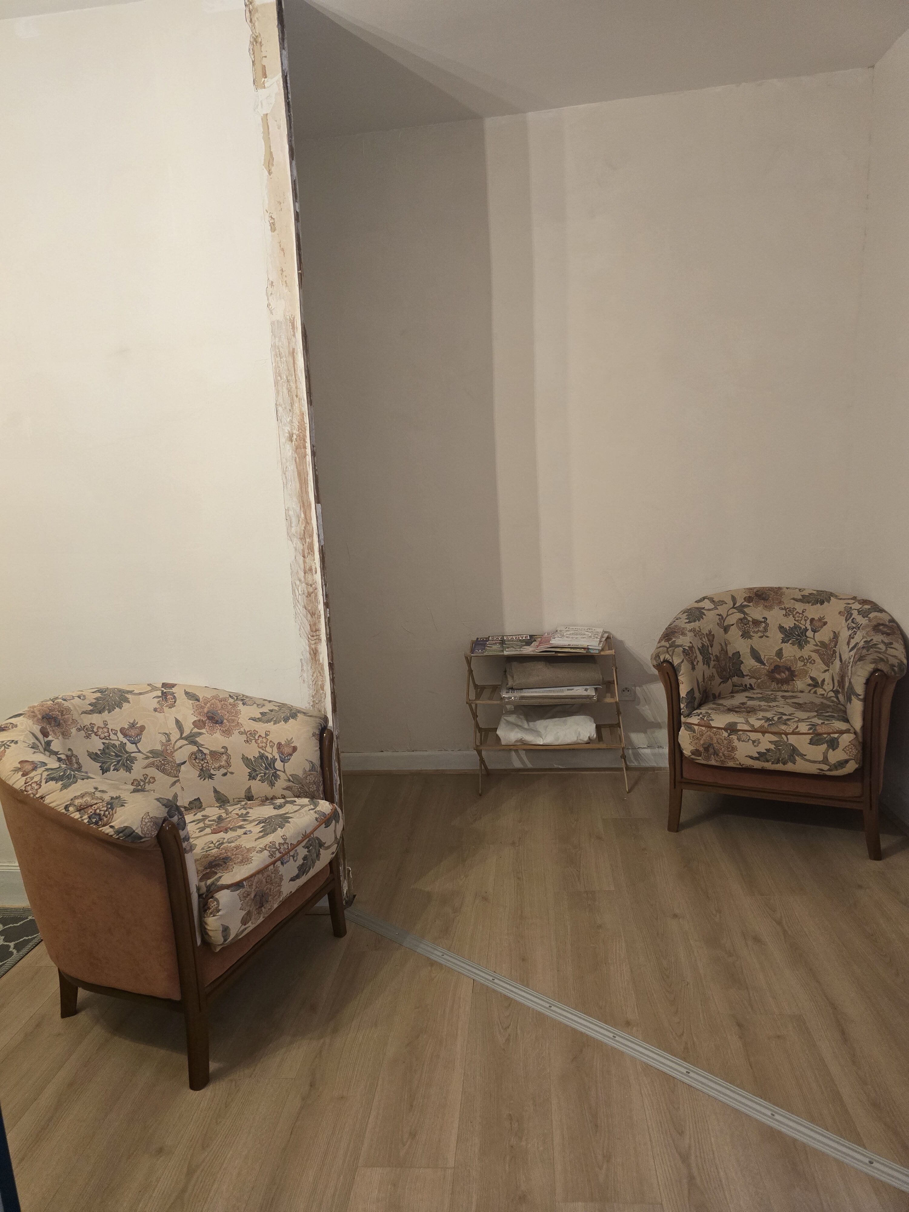 Salle d'attente confortable : pour accueillir les clients dans un cadre apaisant avant leur rendez-vous, équipé de sièges confortables, de magazines ou d'informations sur les services proposés.