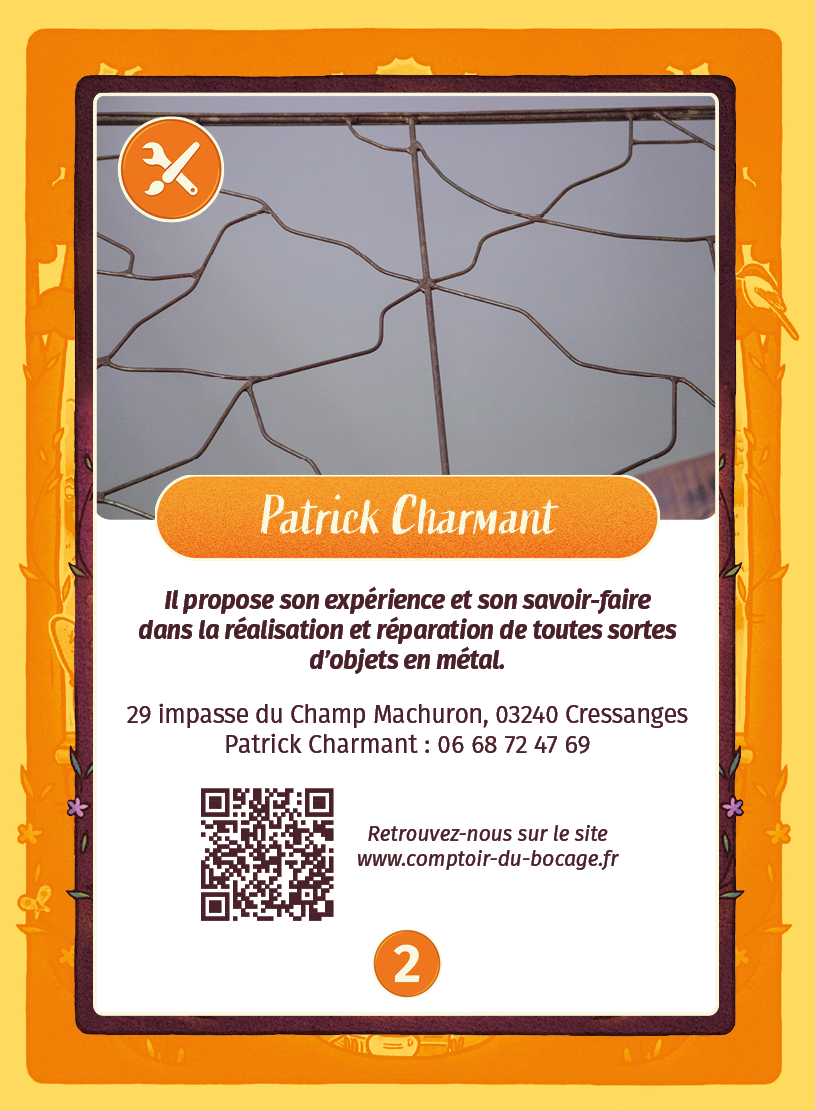 Patrick Charmant est un artisan en ferronnerie et métallerie installé à Cressanges.